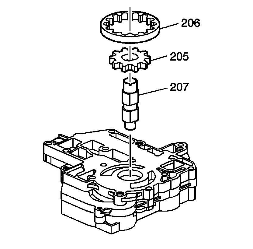 3. Remove the oil pump drive shaft (207), and the secondary pump gears (205, 206).