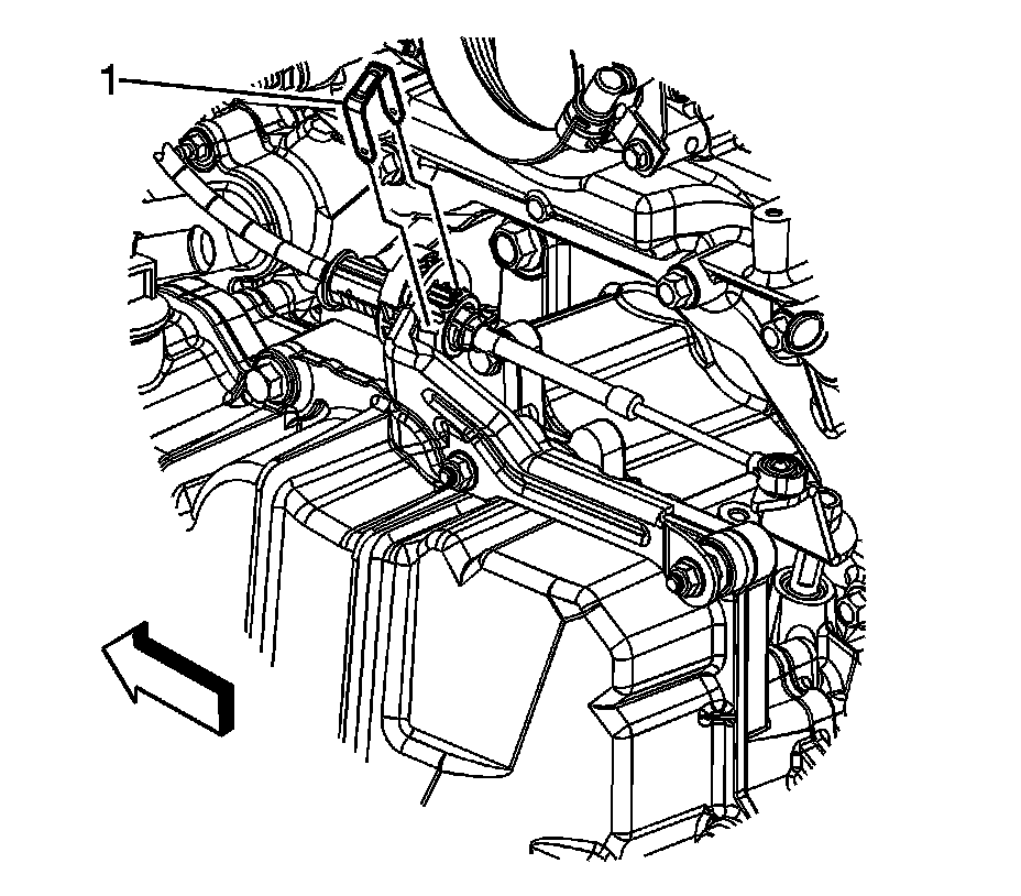 3. Disconnect the transmission range selector cable terminal (1) from the transmission manual shift lever pin.
