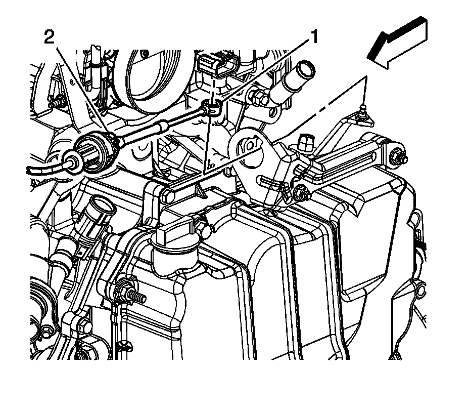 6. Remove the transmission range selector cable terminal (2) from the shift control pin.
