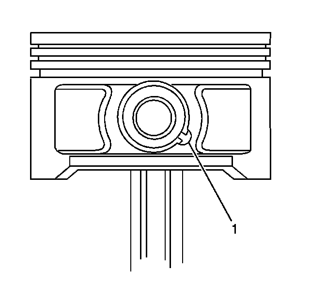 3. Rotate the piston pin retainers until the ring end gaps are positioned in the cutout area (1) of the pin bore.