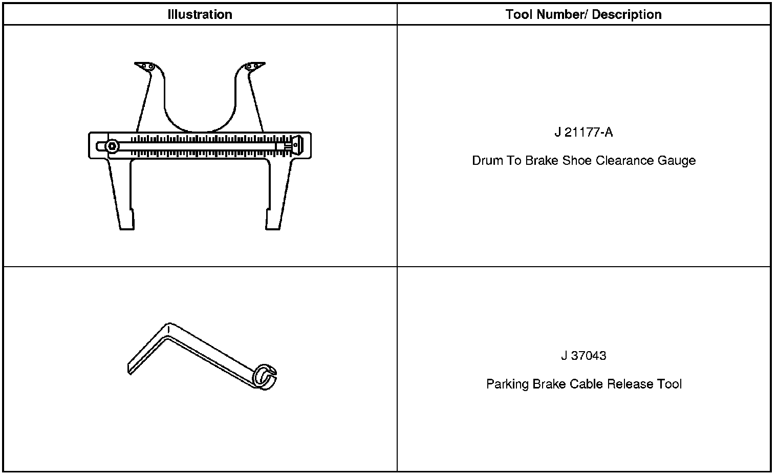 Parking Brake System: Tools and Equipment