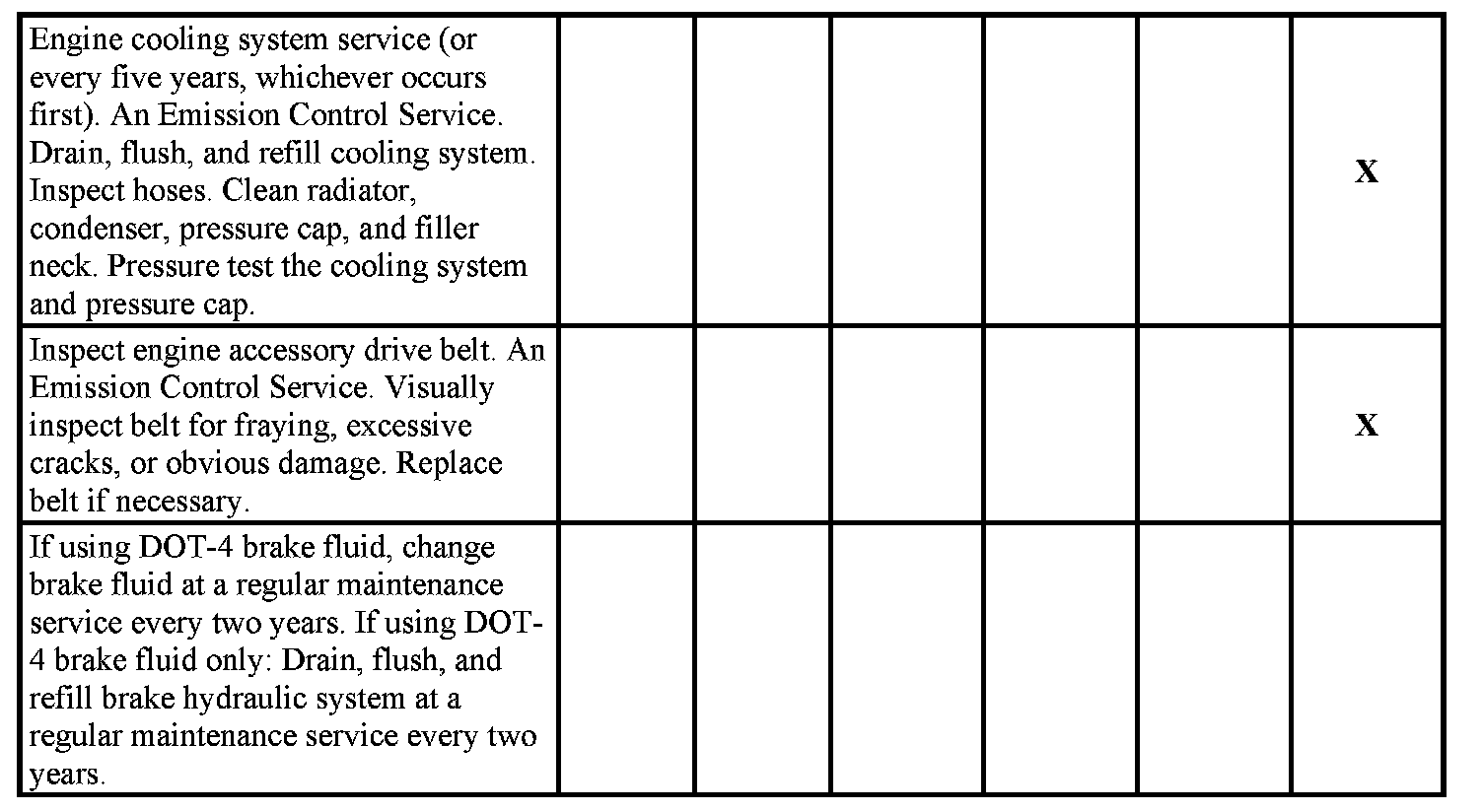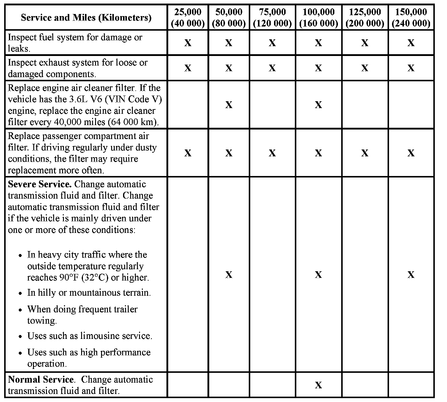 service after the indicated miles (kilometers) shown for each item.