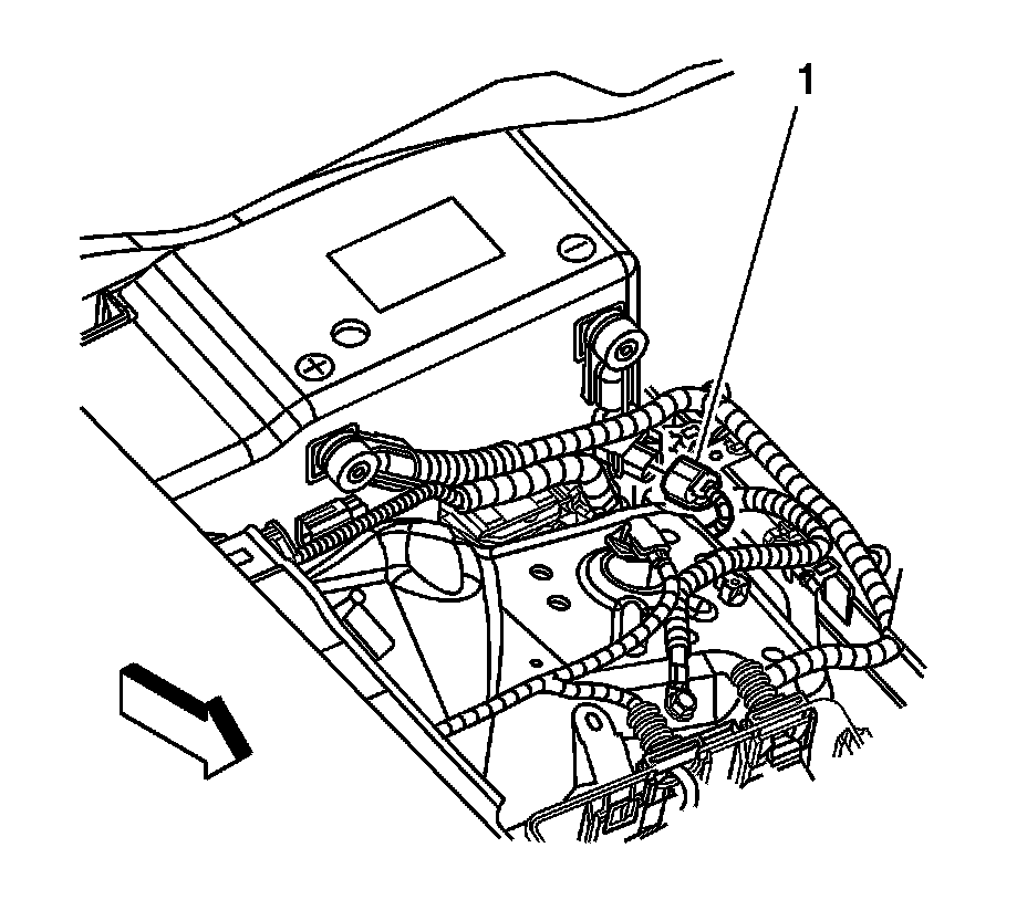 2. Disconnect the instrument panel (I/P) harness electrical connector (1) from the battery current sensor.