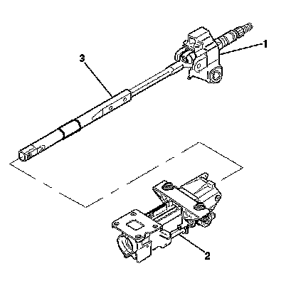 17. Remove the tilt head assembly (1) from the steering column support assembly (2) with the steering shaft (3) still attached.