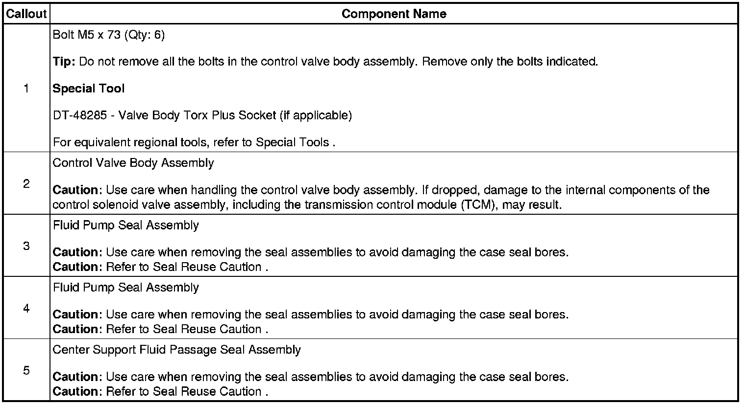 Control Valve Body Assembly Removal