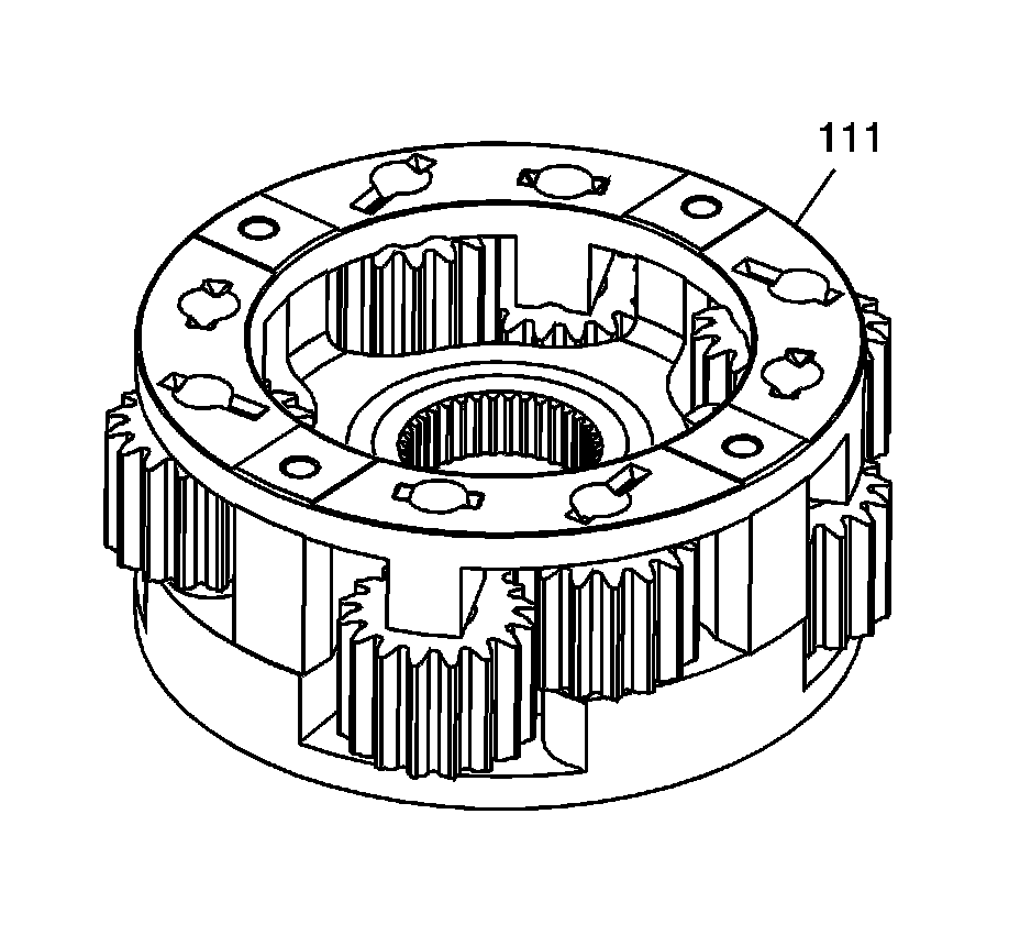 Note: The carrier assembly (111) must be installed with the thrust washer and groove around the splines toward the output shaft. Reversing this causes a mis-build, and the wrong torque split of 60/40.