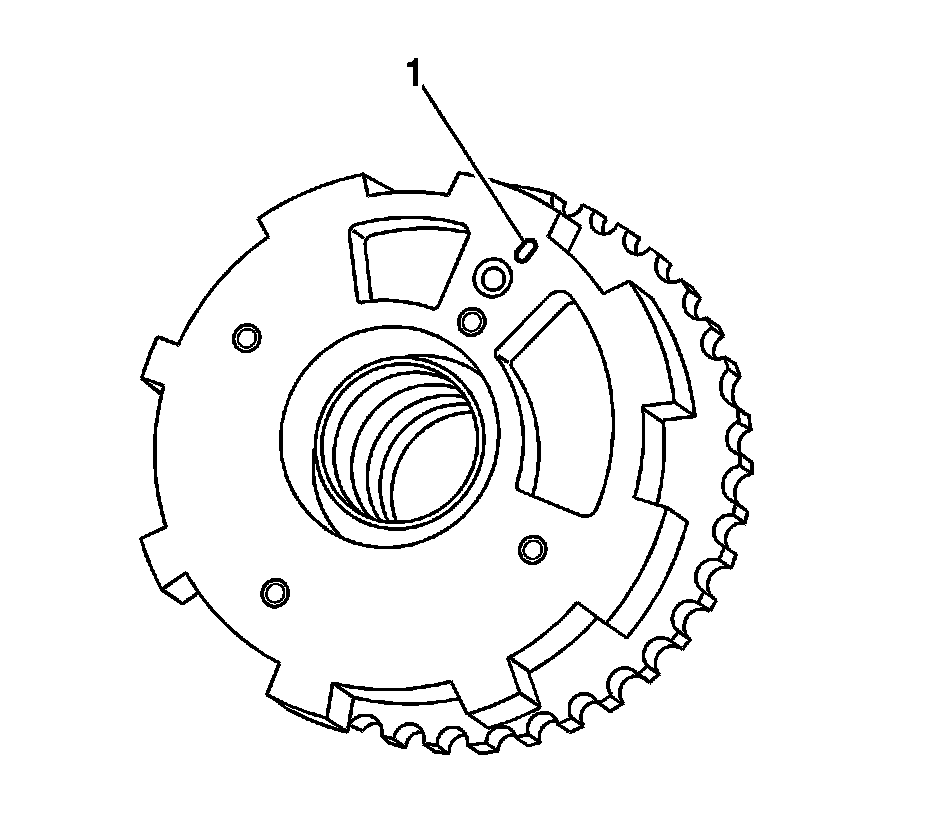 1. The primary timing gear alignment mark (1) is at the top of its position,