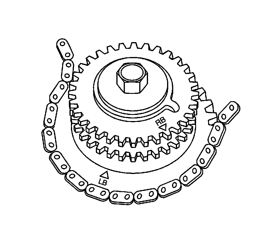 9. Assemble the secondary timing chain to the intermediate sprocket aligning the sprocket LB timing mark to the timing chain black link.