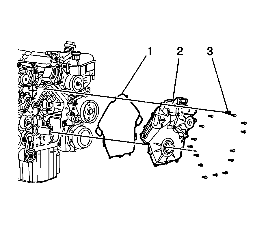 7. Apply the thread locking compound to the threads of the engine front cover bolts (3). Refer to Adhesives, Fluids, Lubricants, and Sealers (Specifications) for the correct part number.