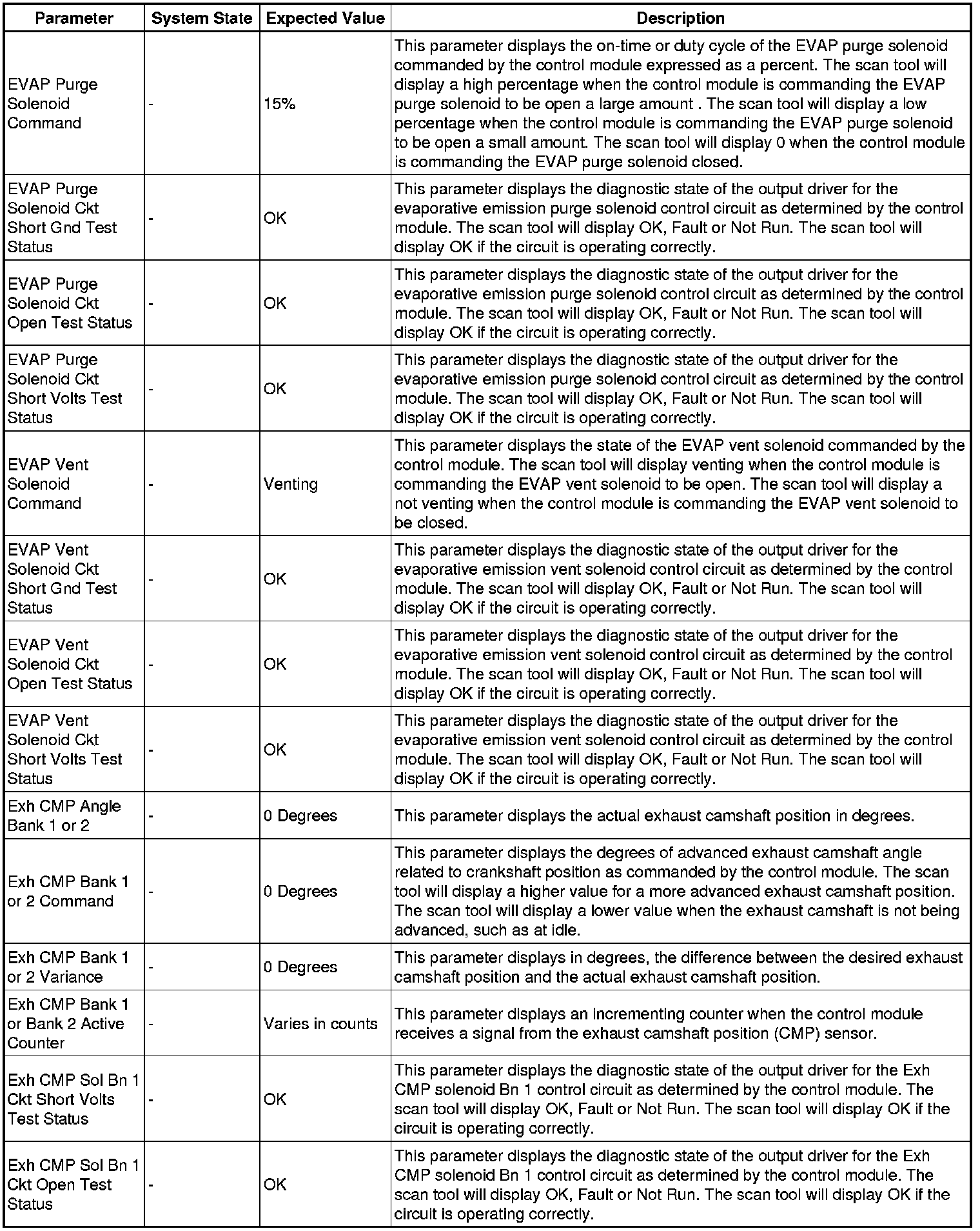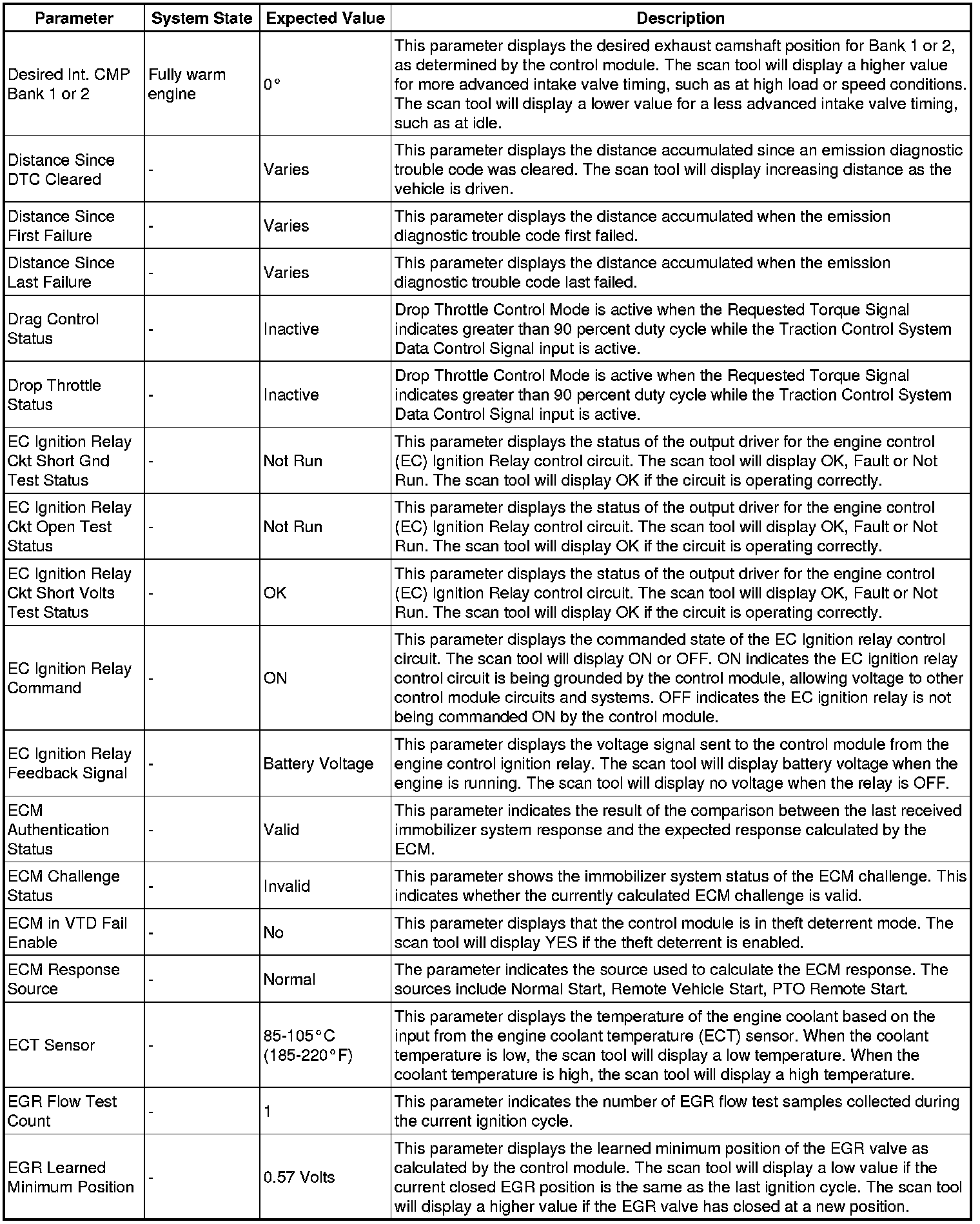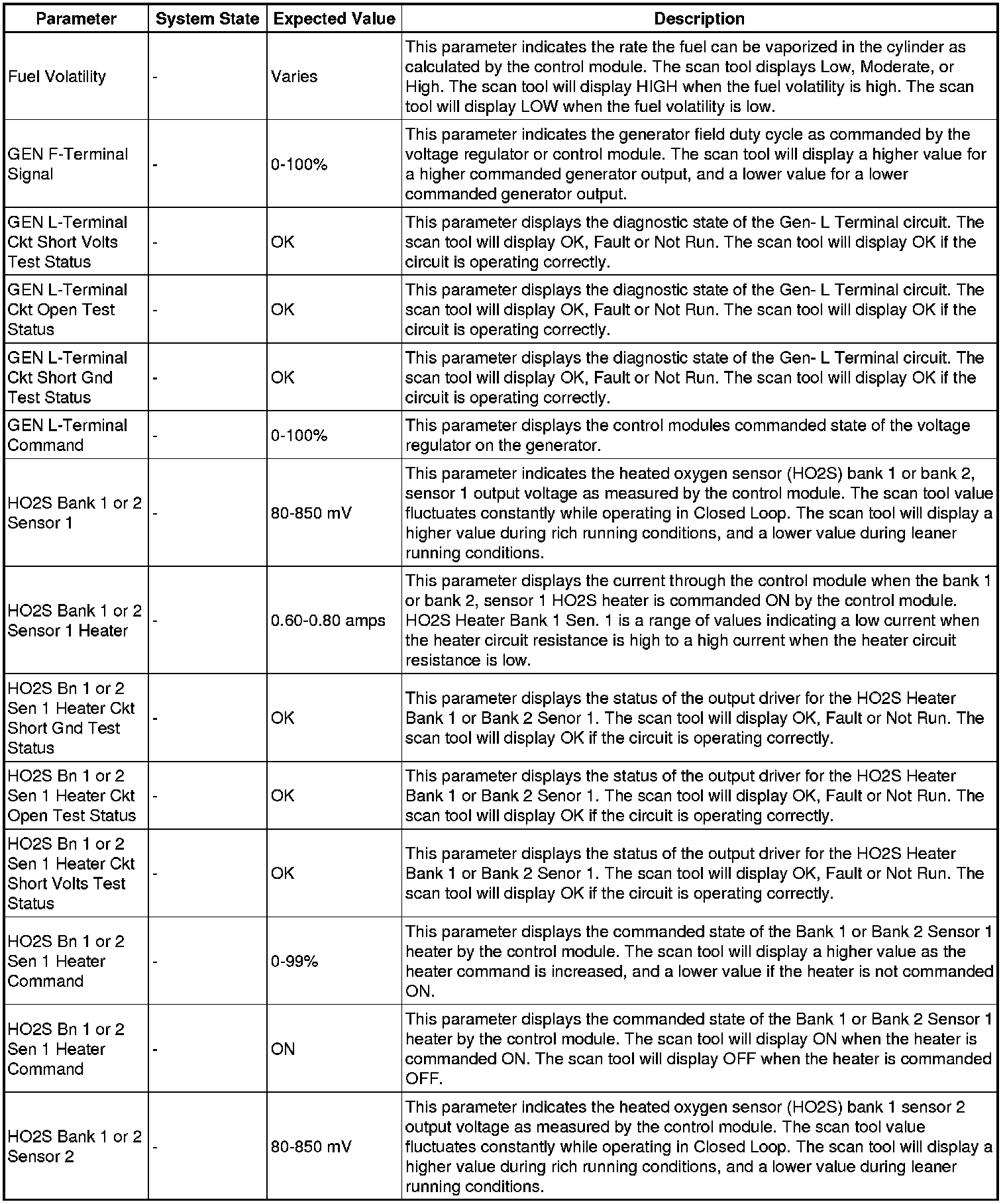 The Engine Control Module Scan Tool Data List contains all engine-related parameters that are available on the scan tool. The list is arranged in alphabetical order. A given parameter may appear in any one of the data lists, and in some cases may appear more than once, or in more than one data list in order to group certain related parameters together.