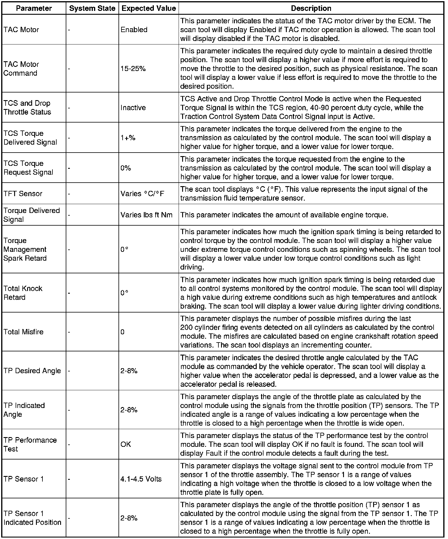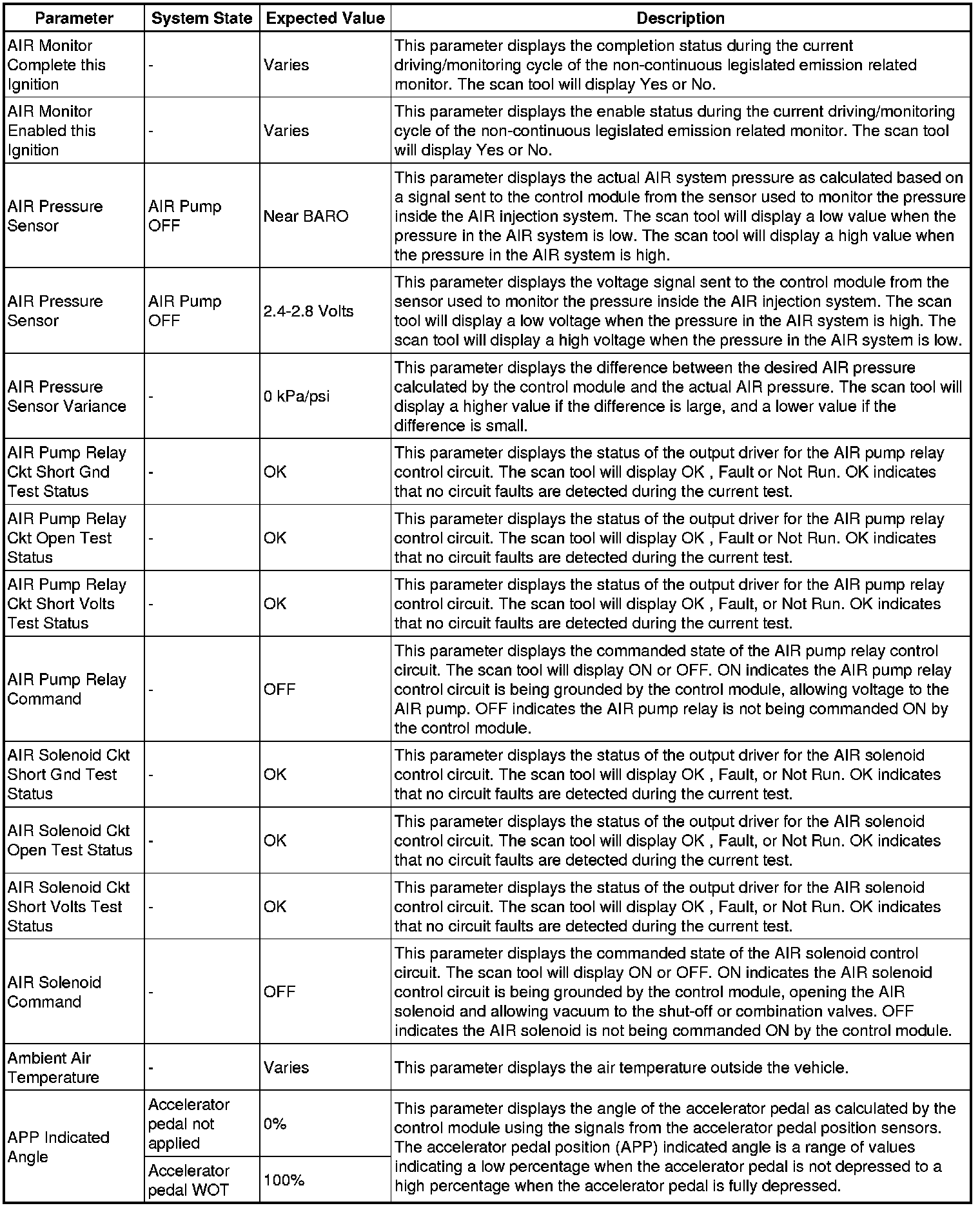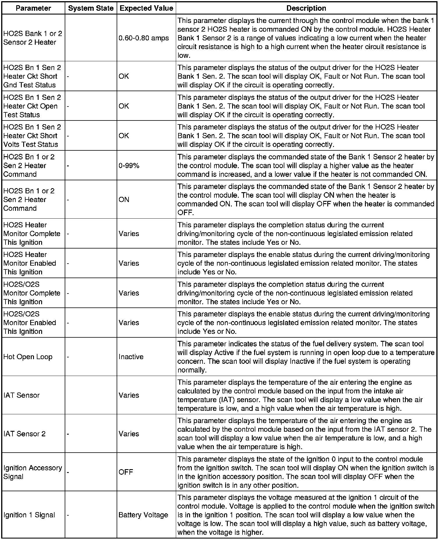 The Engine Control Module Scan Tool Data List contains all engine-related parameters that are available on the scan tool. The list is arranged in alphabetical order. A given parameter may appear in any one of the data lists, and in some cases may appear more than once, or in more than one data list in order to group certain related parameters together.