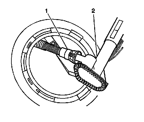 Note: Ensure the fuel level float is free from binding while inserting the module (2).