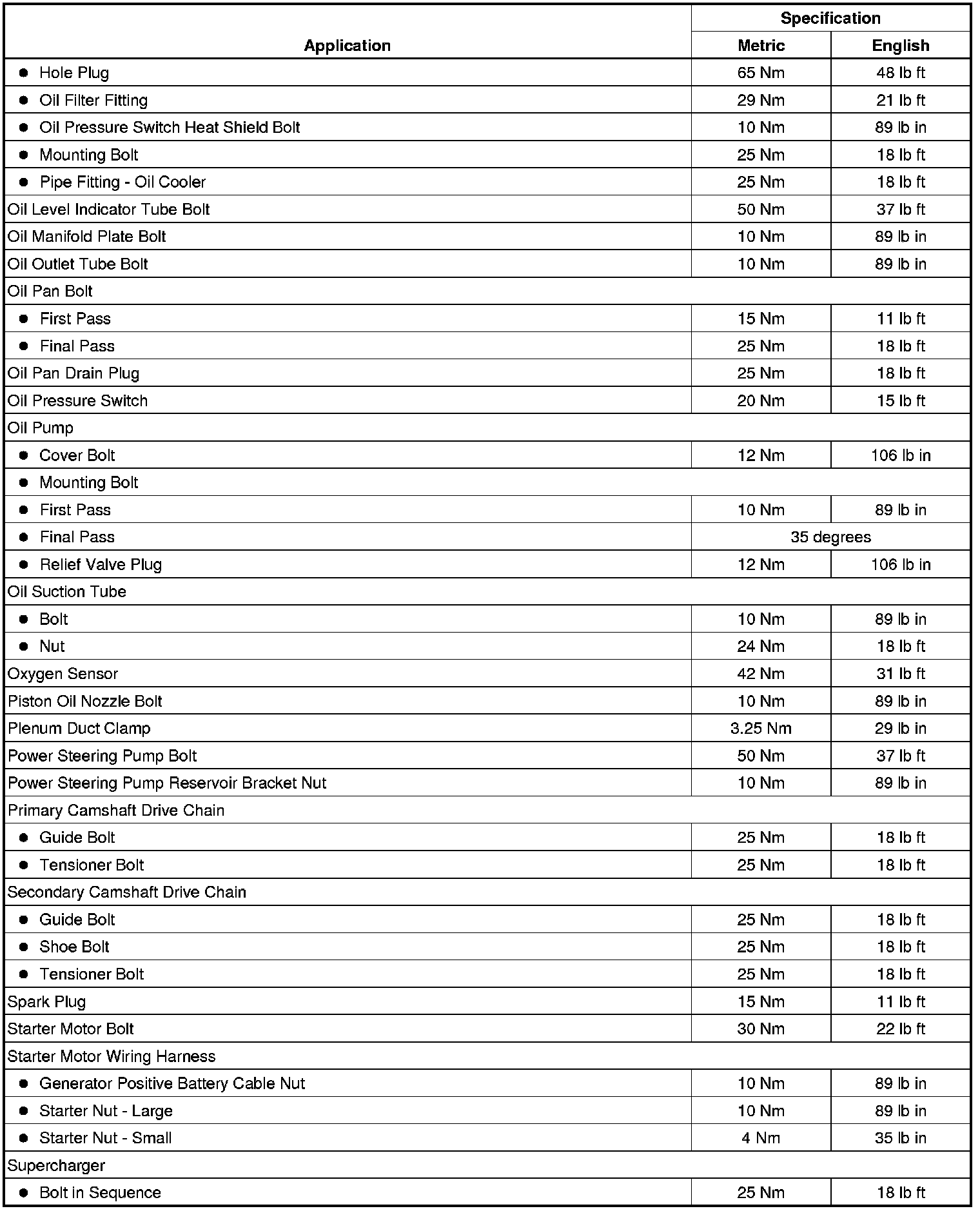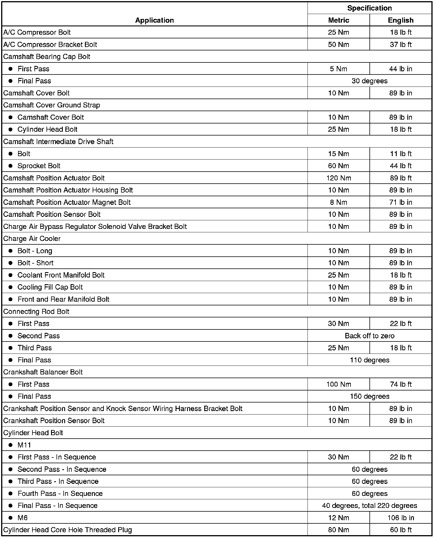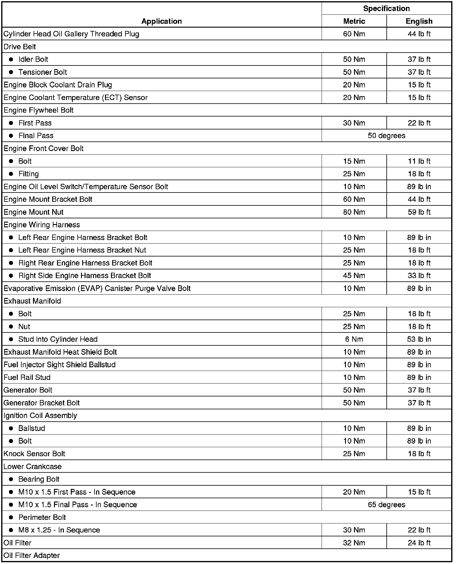 Fastener Tightening Specifications