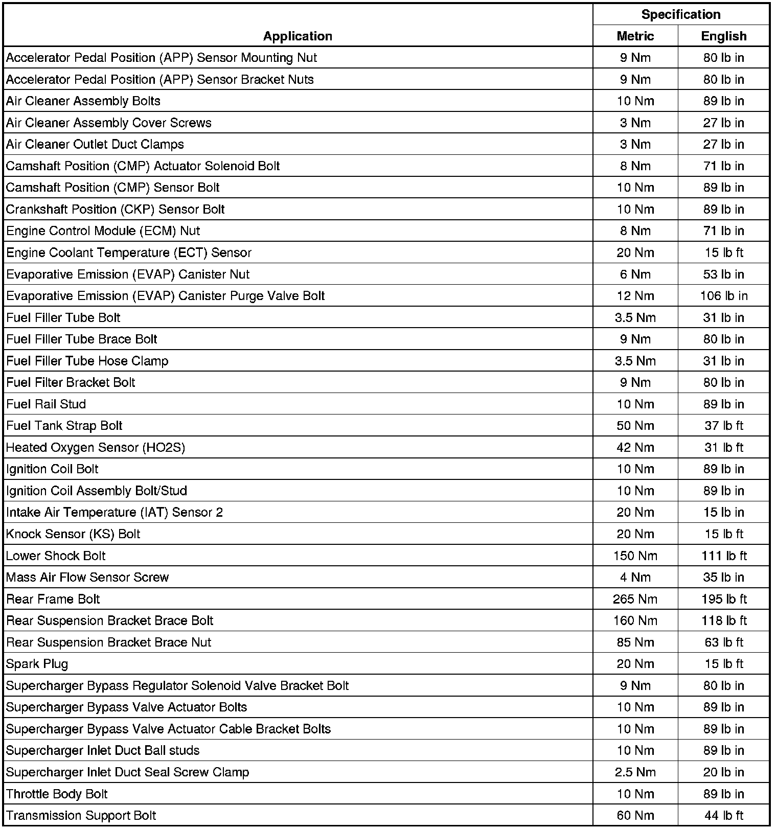 Fastener Tightening Specifications