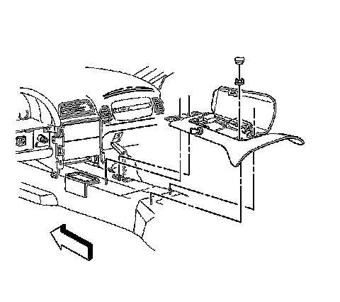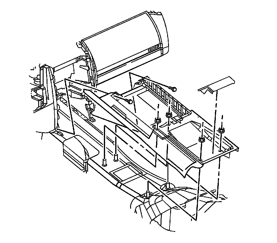 7. Install the console retaining nuts and the retaining bolt to the I/P carrier. Tighten the nuts to 10 Nm (89 lb in).