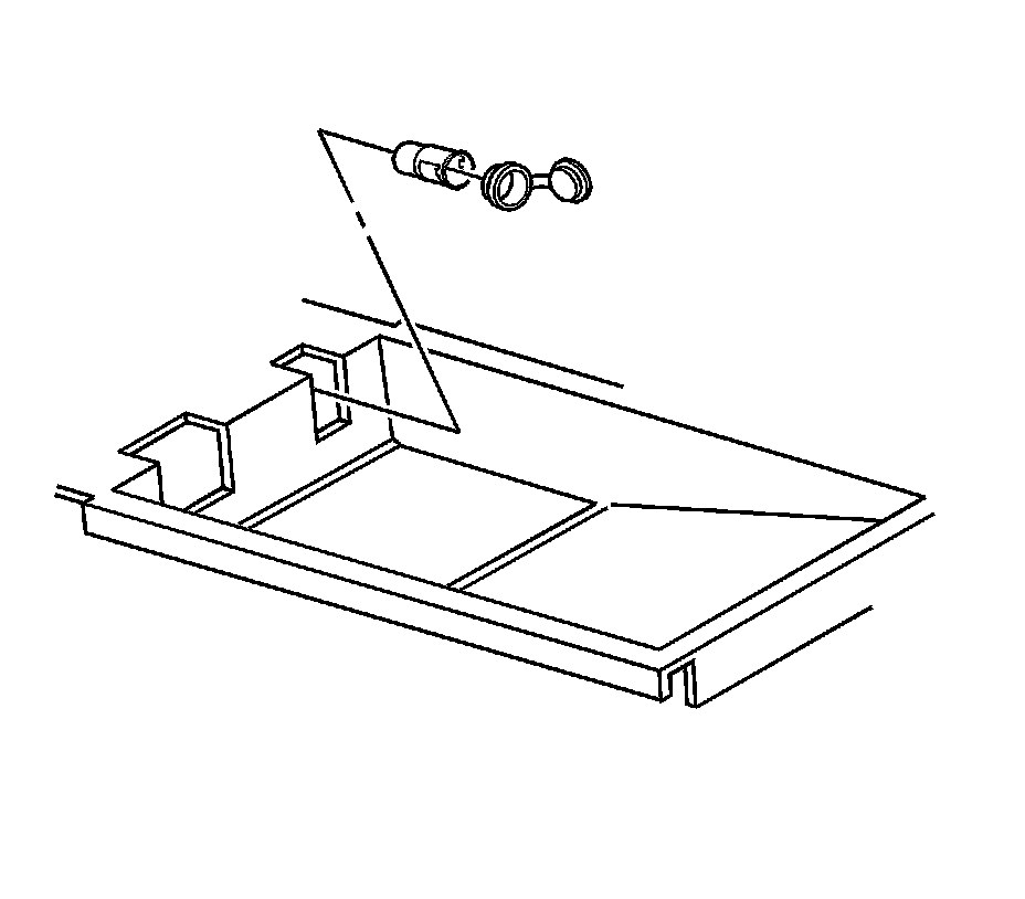 13. Using a flat-bladed tool, disengage the lamp from the retainer. Route the lamp through the hole in the console bin.