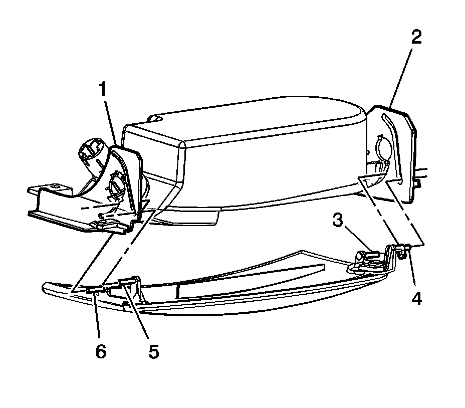 3. Insert the compartment door front guide pins (5, 6) into the compartment door front guide (1).