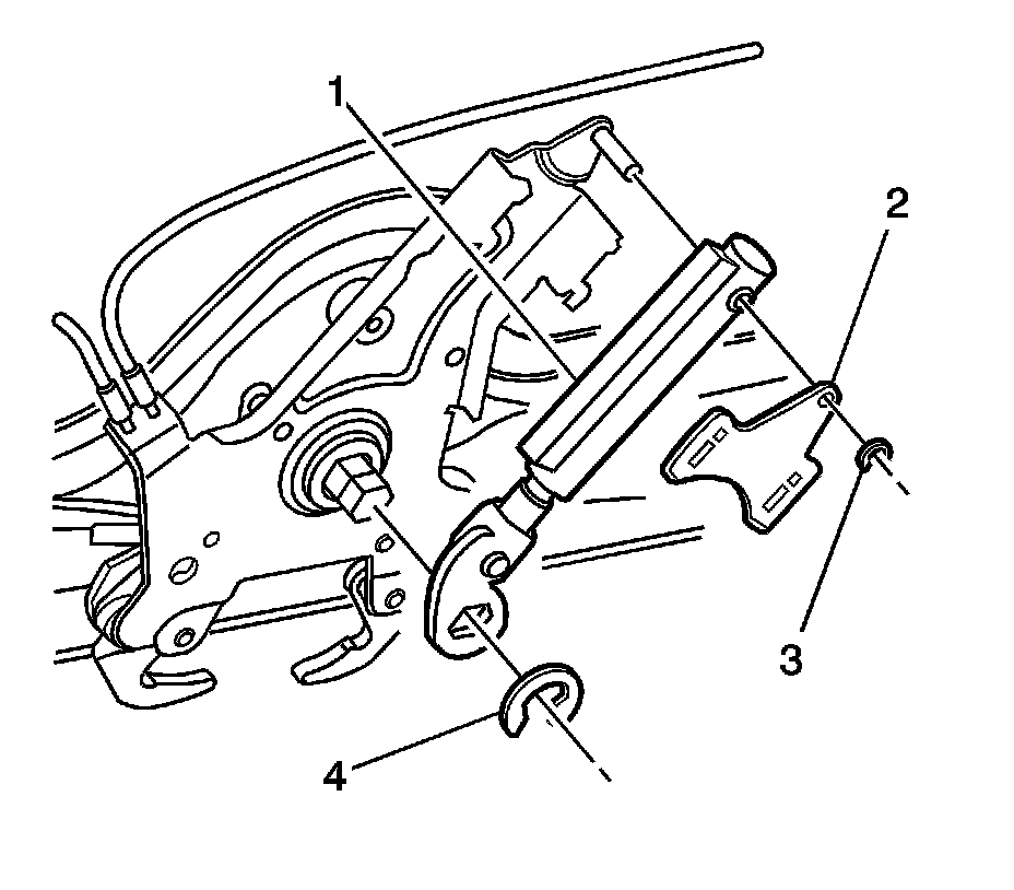 4. Remove the C-clip (4) from the latch actuator shaft.