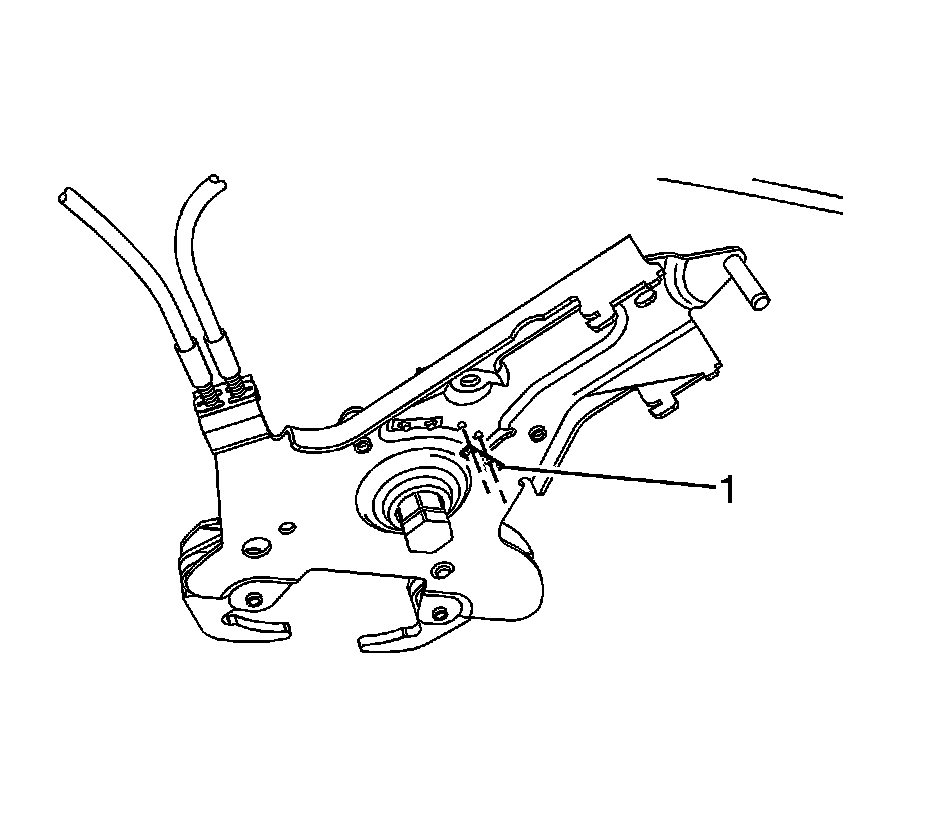 7. Remove the hydraulic cylinder and the actuator arm from the latch (1).