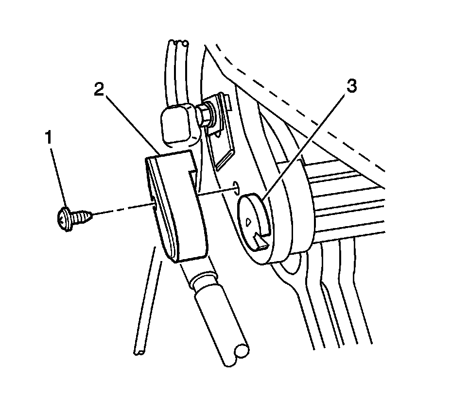 2. Position the potentiometer (3) to the link (1). Align the D-shaped rotor into the D-shaped hole (2) in the link.