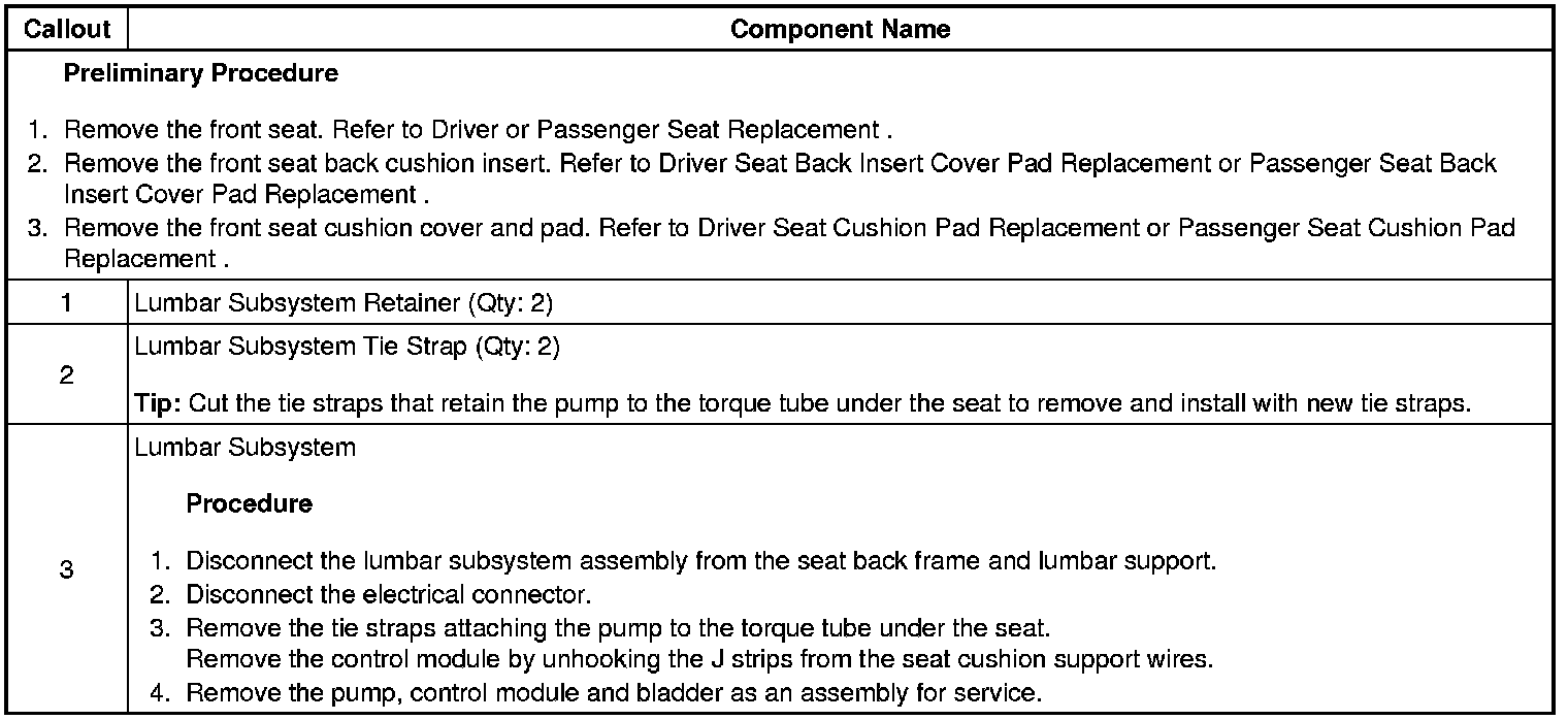 Seat Lumbar Sub System Replacement