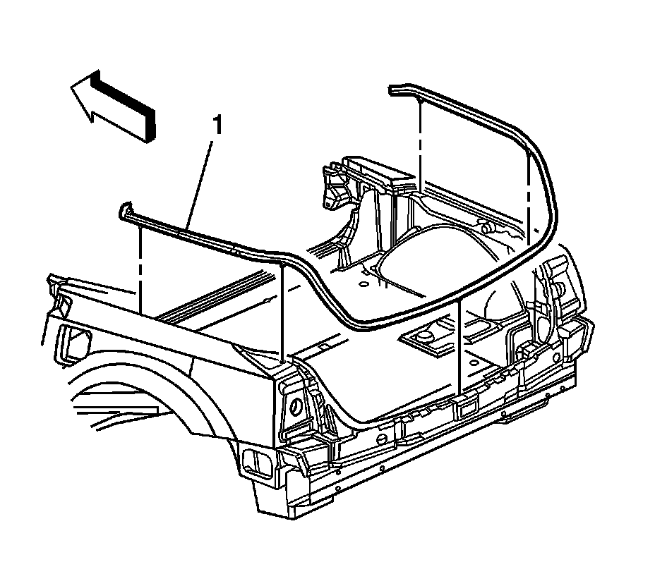 1. Position the weatherstrip (1) to the rear compartment flange.