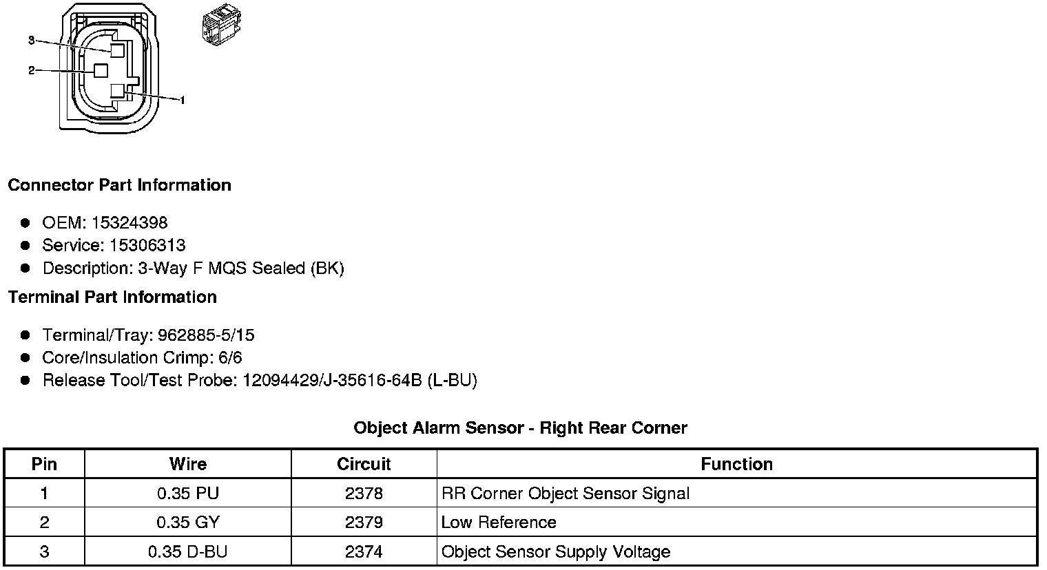 Object Alarm Sensor - Right Rear Corner