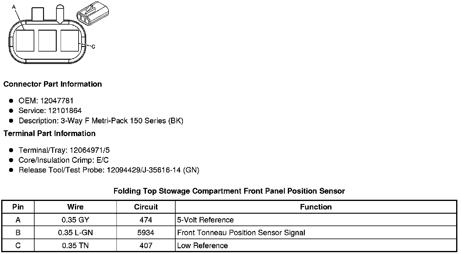 Folding Top Stowage Compartment Front Panel Position Sensor