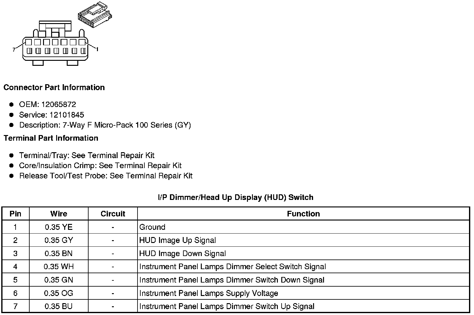 I/P Dimmer/Head Up Display (HUD) Switch