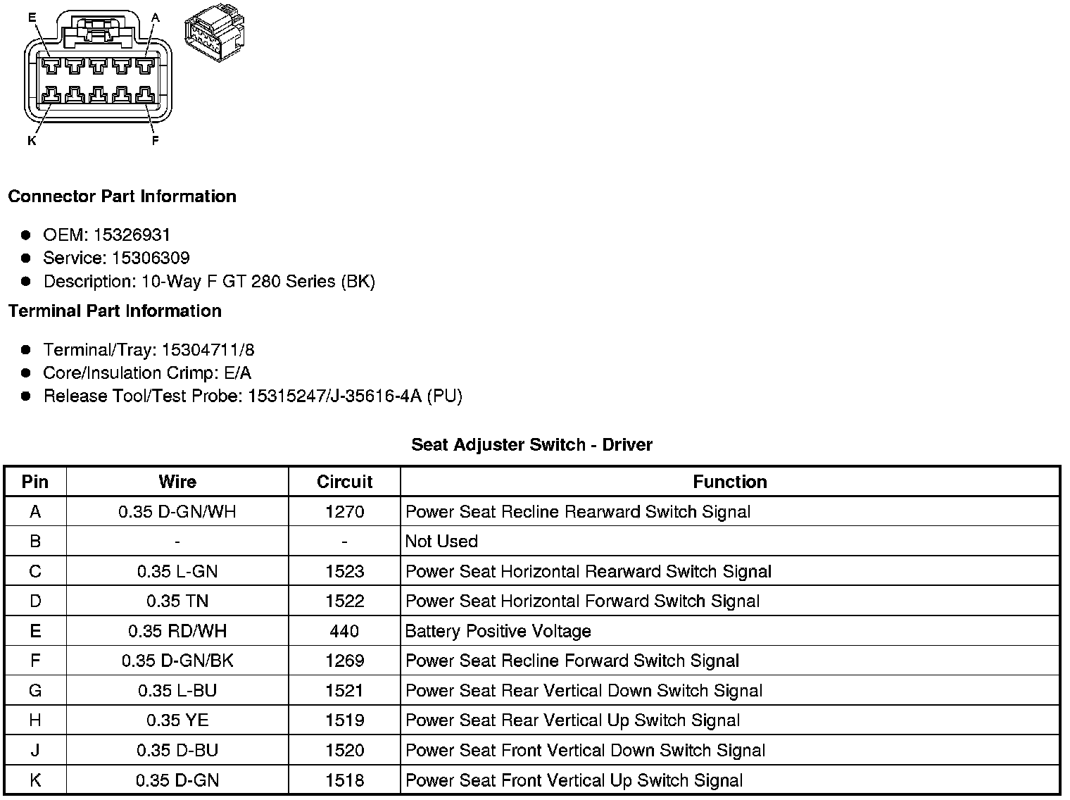 Seat Adjuster Switch - Driver