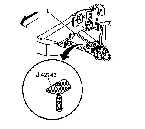 Important: When adjusting the spring adjuster bolt, J 42743 must be used in order to prevent damage to the rubber shear pad on the end of the bolt. One complete turn of the spring adjuster bolt is equal to 2 mm (5/64 in).