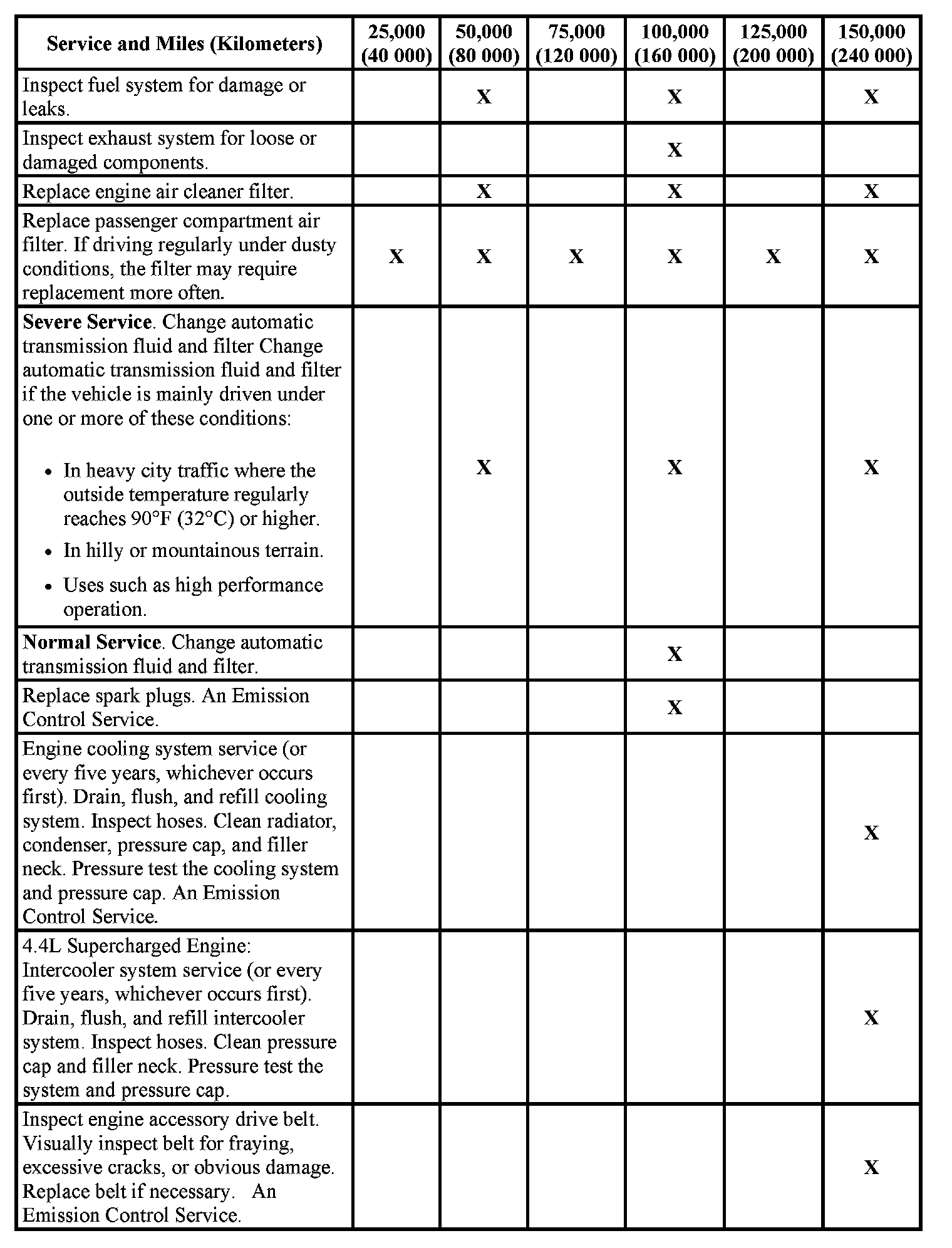 service (I or II) after the indicated miles (kilometers) shown for each item.