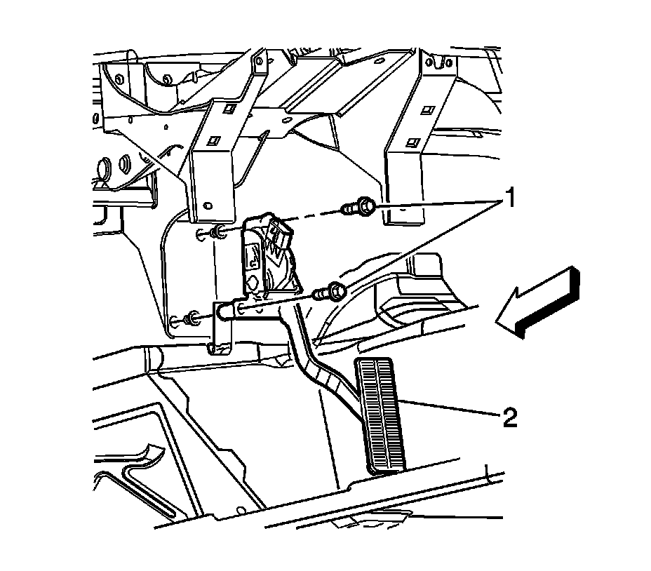 2. Install the accelerator pedal mounting bolts (1) and tighten to 10 Nm (89 lb in).