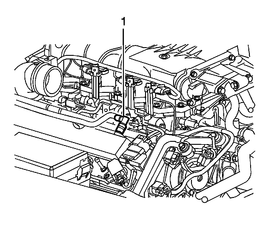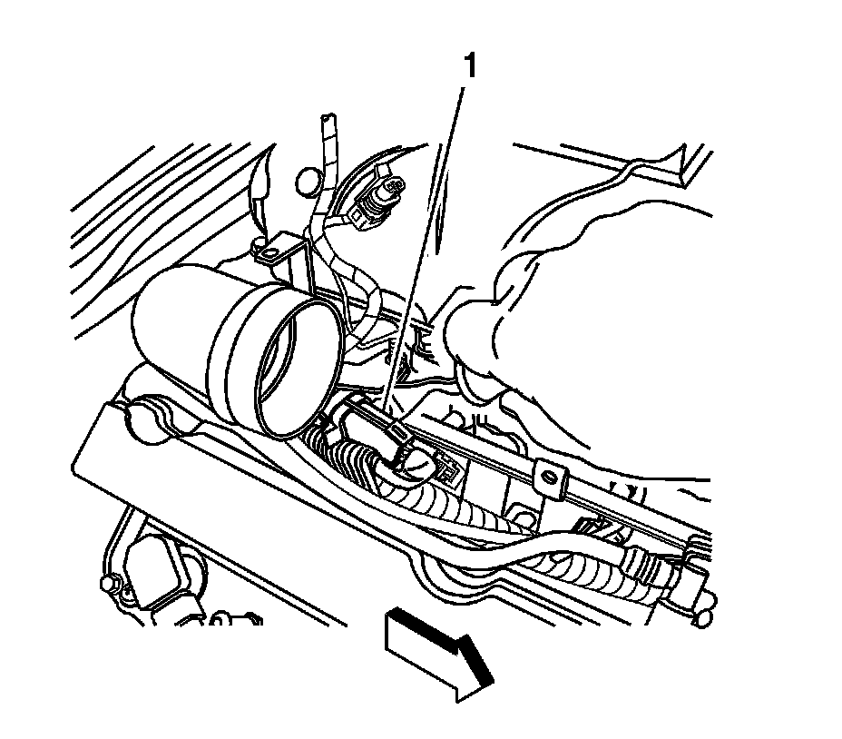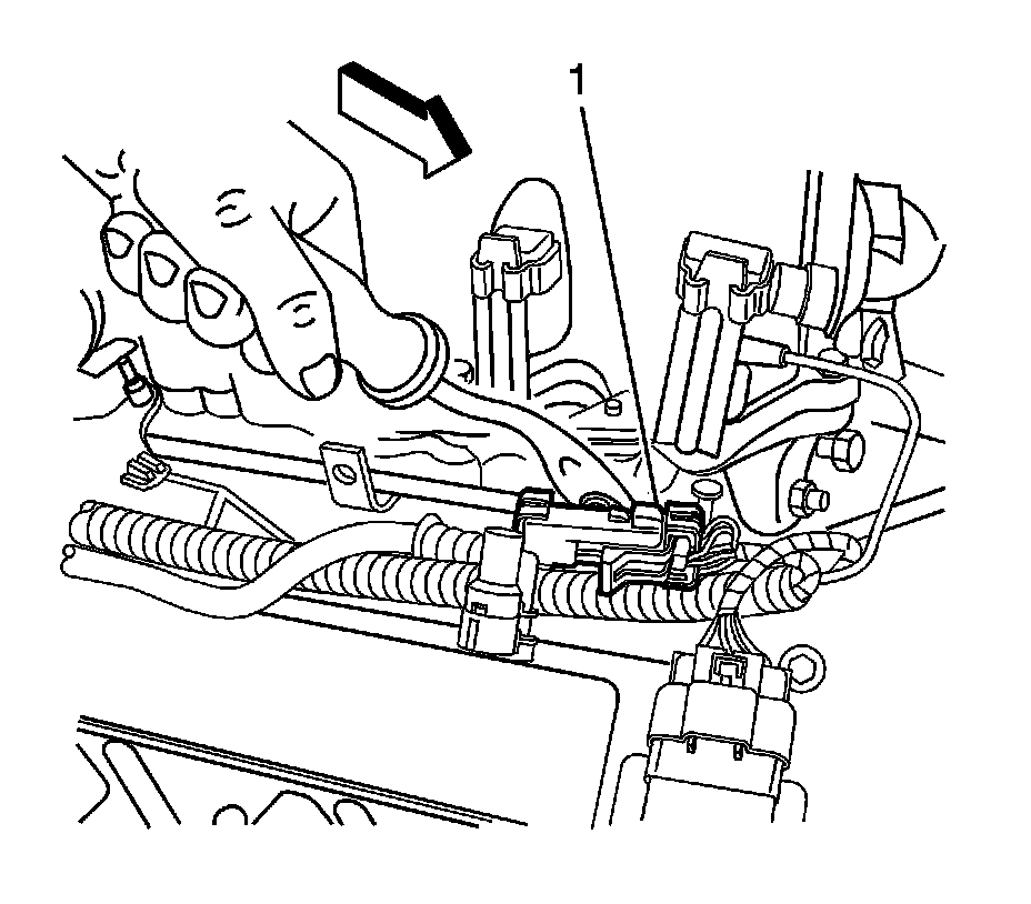2. Separate the bank 1, sensor 1 electrical connector assembly (1) from the fuel rail bracket.