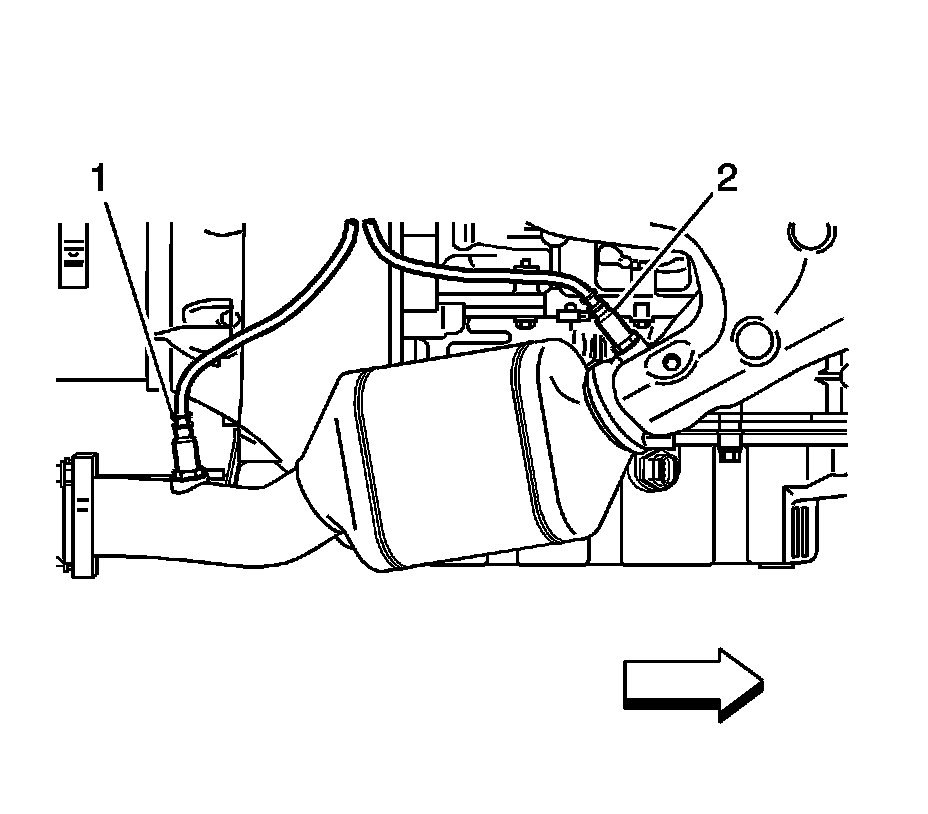 1. Install the bank 1 sensor 2 oxygen sensor (1) to the exhaust manifold. Tighten the heated oxygen sensor (HO2S) to 42 Nm (31 lb ft).