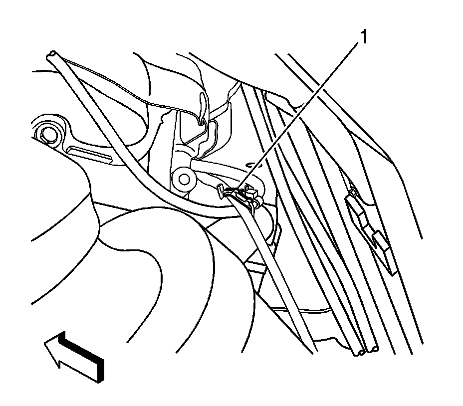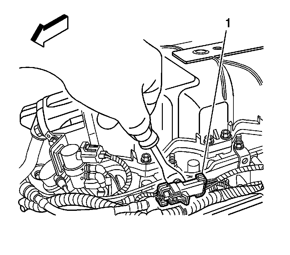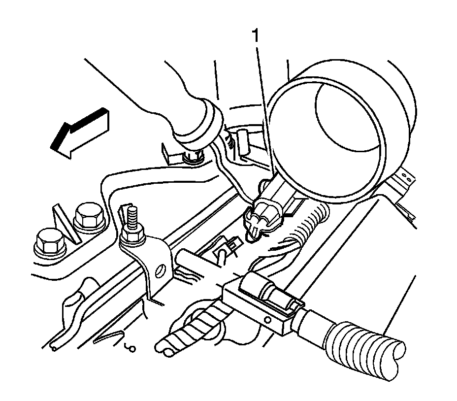 1. Separate the bank 2, sensor 1 electrical connector assembly (1) from the fuel rail bracket.