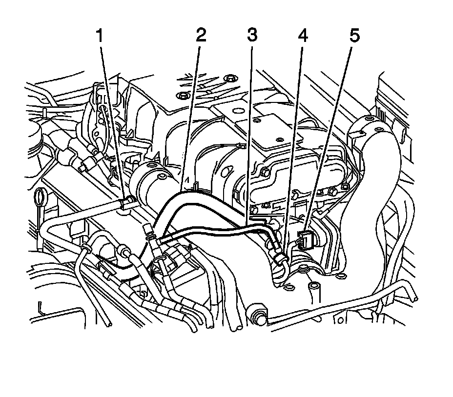 8. Connect the evaporative emission (EVAP) hose (3) to the chassis bundle at the front of dash.