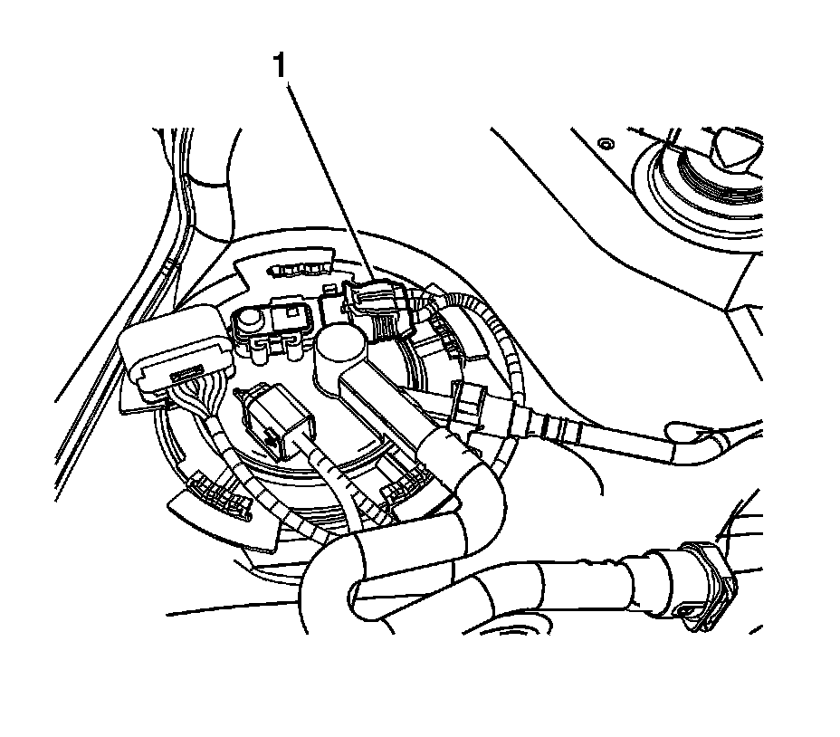 3. Disconnect the fuel tank pressure sensor electrical connector (1) located on the right side fuel tank module.
