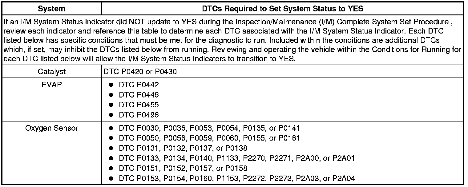 Inspection/Maintenance (I/M) System DTC Table