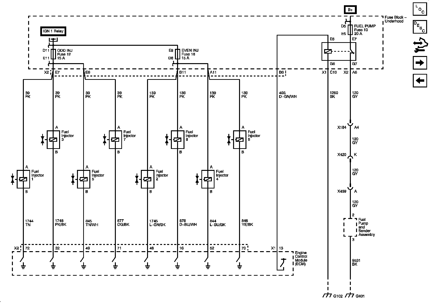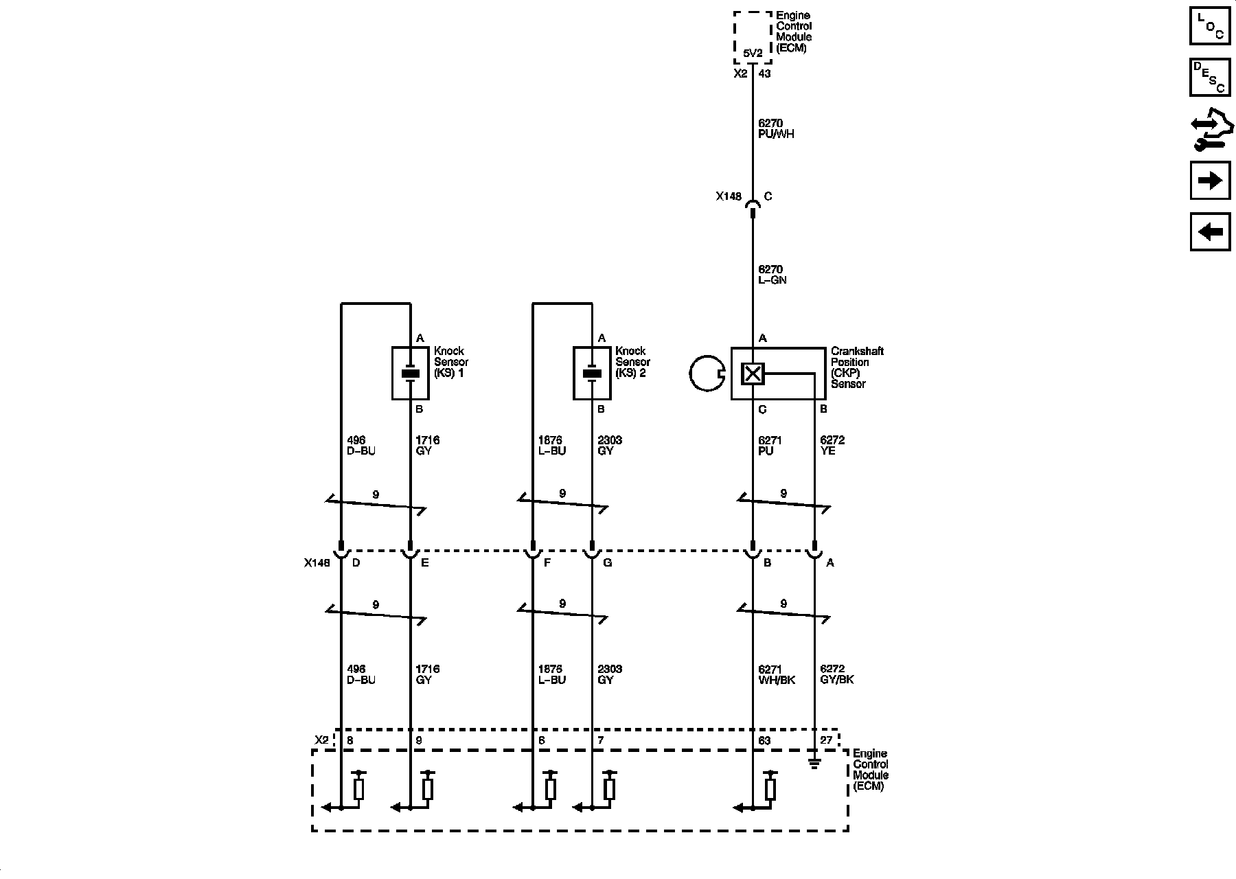 Locations: The locations for the Connectors, Grounds, Splices, and Grommets shown within these diagrams can be found via their numbers at Vehicle Locations. Locations