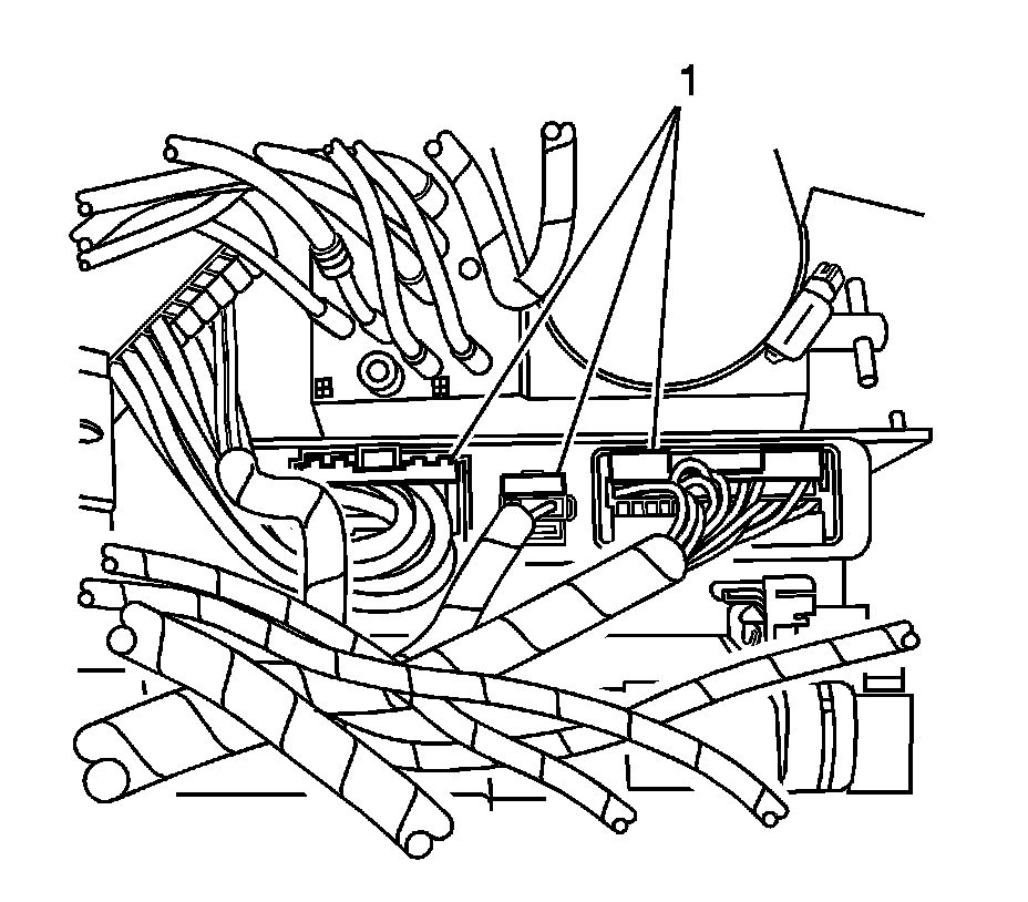 24. Disconnect the 3 electrical connectors (1) from the folding top control module.