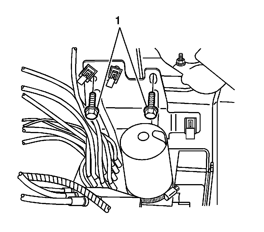 25. Remove the hydraulic pump bracket bolts (1).