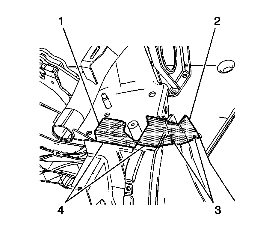 35. Apply a consistent bead of structural adhesive to the bonding mating surfaces on the backing plates (1,2) and on the vehicle (3). Refer to Sheet Molded Compound (SMC) Panel Bonding ().