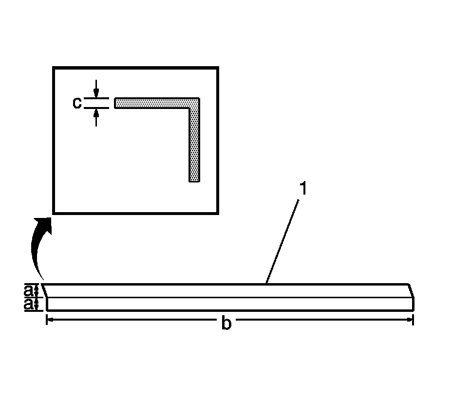 29. Begin with a piece of angle iron (1) of length (b) 1448 mm (57 in), of width (a) 50x50 mm (2x2 in) with a minimum wall stock (c) of 3 mm (1/8 in).