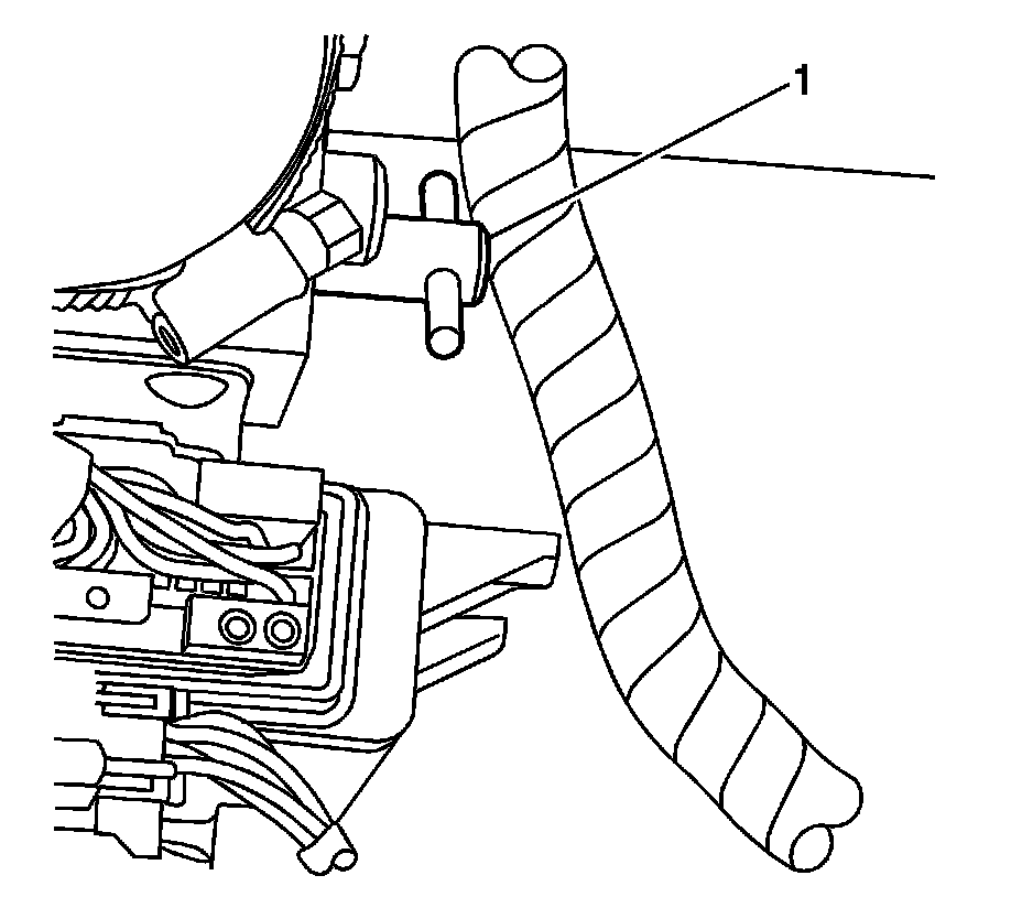 15. Install the hydraulic hoses in the fold-over clips (1) on the rear end panel. Fold the clips over to retain the hydraulic hoses.