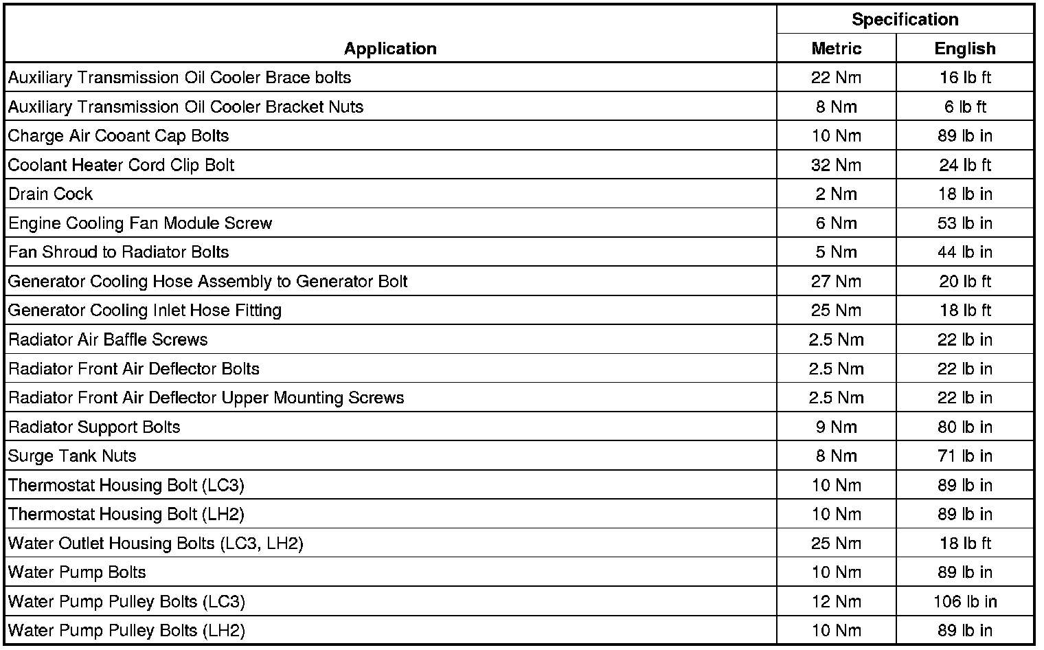 Fastener Tightening Specifications