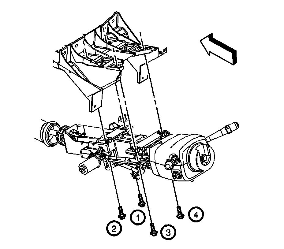 11. Remove the mounting bolts (1, 2, 3, 4) from the steering column.