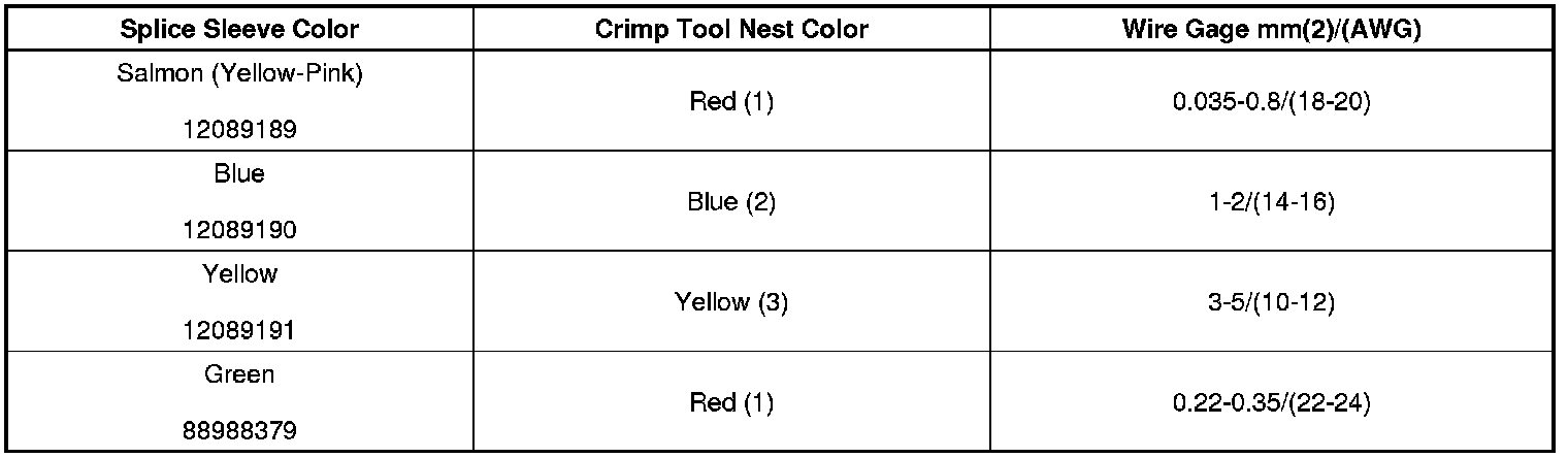 6. Select the proper DuraSeal splice sleeve according to the wire size. Refer to the above table at the beginning of the repair procedure for the color coding of the DuraSeal splice sleeves and the crimp tool nests.
