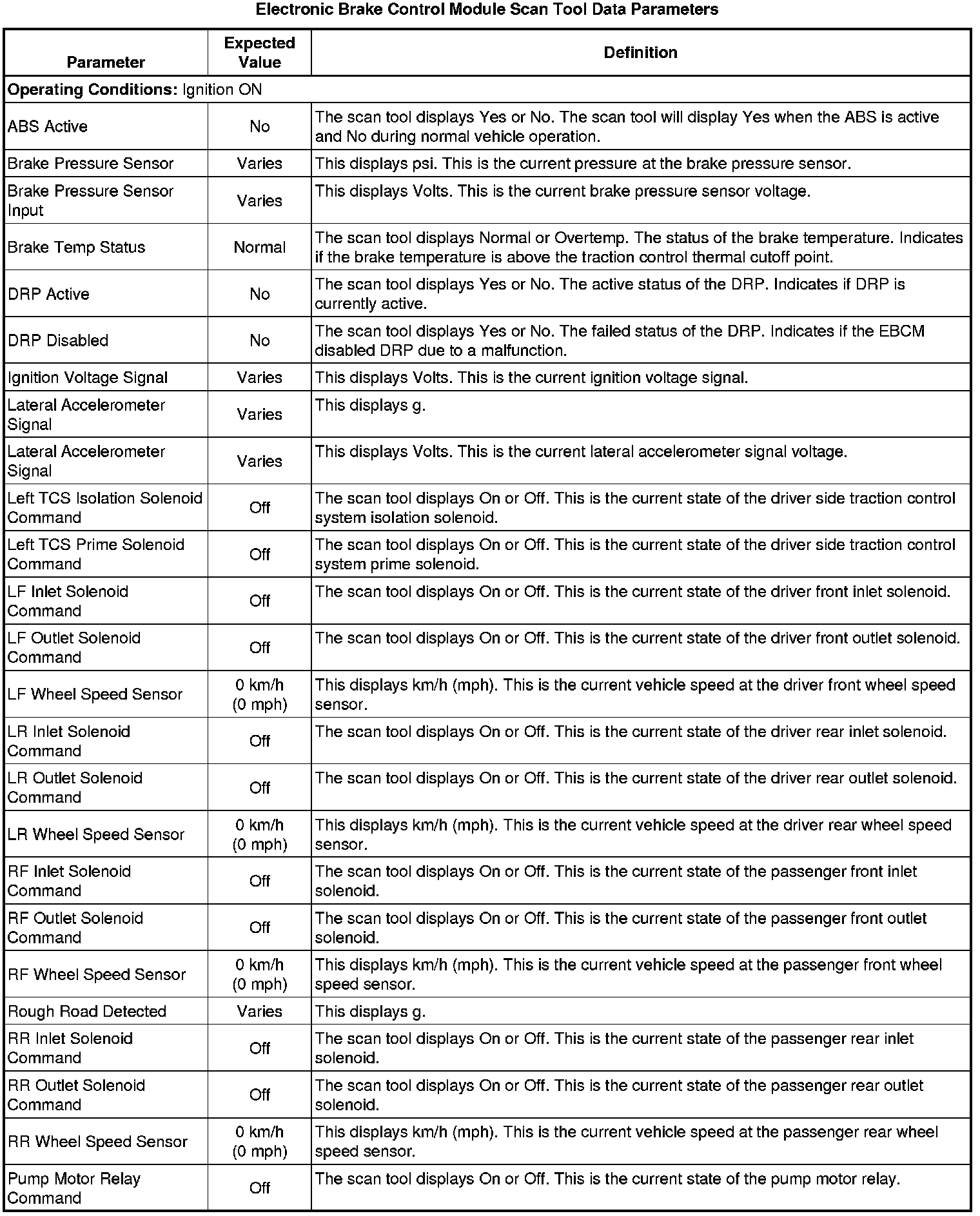Electronic Brake Control Module Scan Tool Information