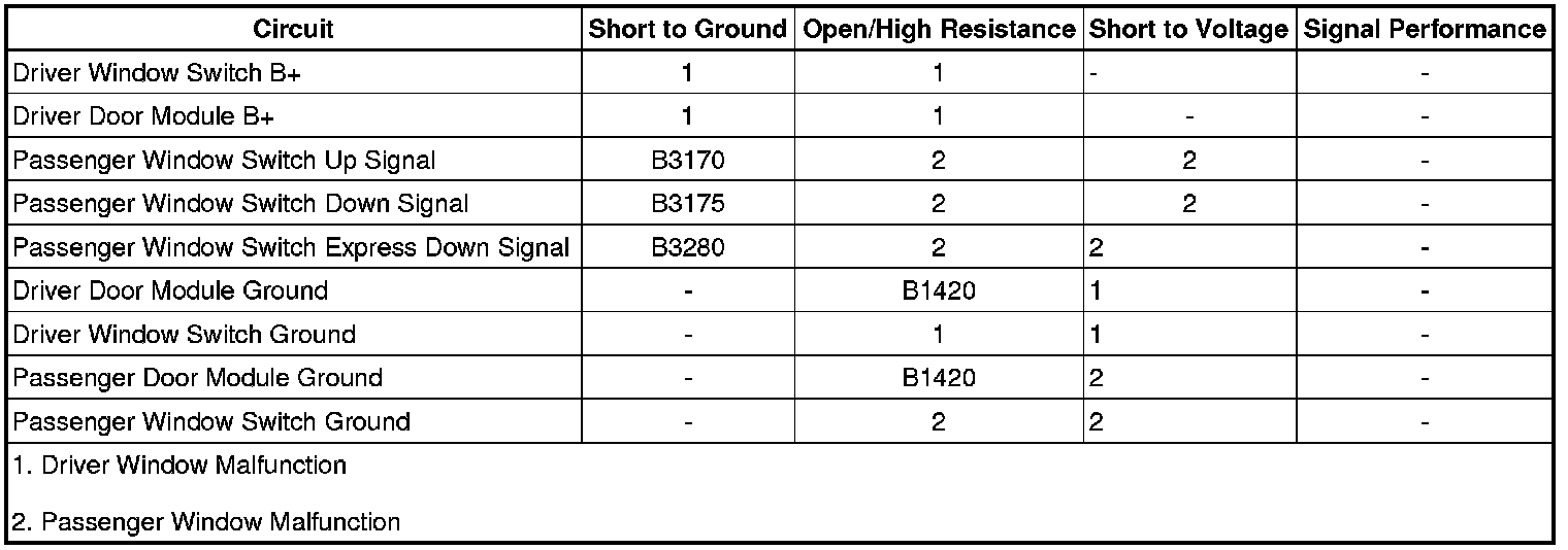 • If the passenger power window does not perform the UP or DOWN function, refer to Passenger Window Motor Malfunction.